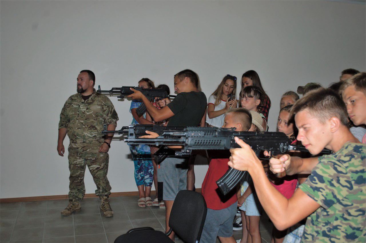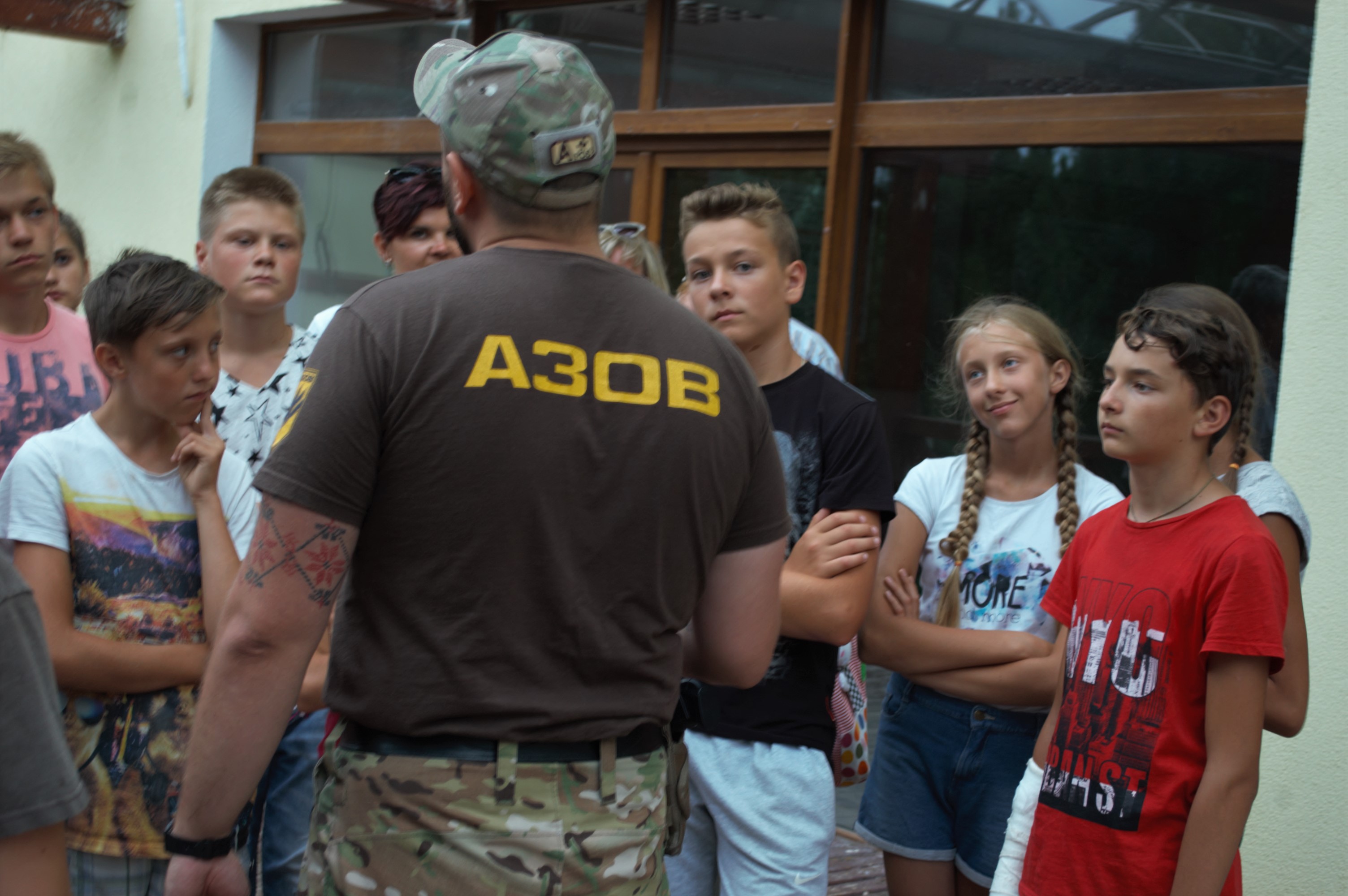 Екскурсію гарнізоном «Урзуф» для гостей провів заступник командира другого батальйону по роботі з особовим складом друг Дипломат. Він показав школярам побут азовців, бойову техніку полку, спортивний зал та майданчики, де бійці тренують свої фізичні вміння. Також АЗОВ зробив для школярів невеличкий подарунок – в азовському інтерактивному тирі їм показали як уміло поводитися зі зброєю та дали зробити кілька пострілів. «Дані заходи є важливими для АЗОВу, адже діти нашої країни – це її майбутнє. Ще важливішим буде те, коли діти розумітимуть, що бійці АЗОВу – це опора країни, її захист, і в першу чергу полк піклується про своїх співгромадян та дітей. Ми показуємо їм, що тут несуть службу звичайні хлопці, які прийшли сюди за покликом серця, – прокоментував даний захід Дипломат. – Патріотичне виховання дійсно важливе. Сьогодні я розказав дітям як для нас важливі спорт, бойова підготовка, пояснив як негативно в АЗОВі ставляться до алкоголя, паління, наркотиків, і я побачив в їх очах розуміння і вогонь. Я сподіваюся, що в майбутньому ці діти виростуть і долучаться до лав нашого підрозділу, і ми вже разом продовжимо розбудовувати нашу країну, а нову країну можна буде побудувати тільки завдяки сильній армії».