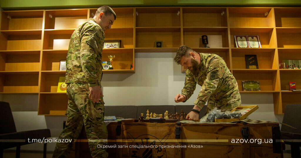Відтепер дозвілля бійців нашого підрозділу проходитиме із ще більшою користю, адже шахи – це поле бою, де воєнні дії розгортаються на очах. Шахи – пряма аналогія битви і умовне відображення військового мистецтва, де поняття тактики і стратегії мають таке ж важливе значення, як на війні. Так, бійці «Азову» тренують не лише тіло, готуючись до виконання завдань за призначенням, а й розум, адже військовослужбовець повинен бути всебічно розвиненим та готовим до будь-яких викликів. Тепер азовці матимуть змогу вдосконалювати свою шахову майстерність навіть у польових умовах.