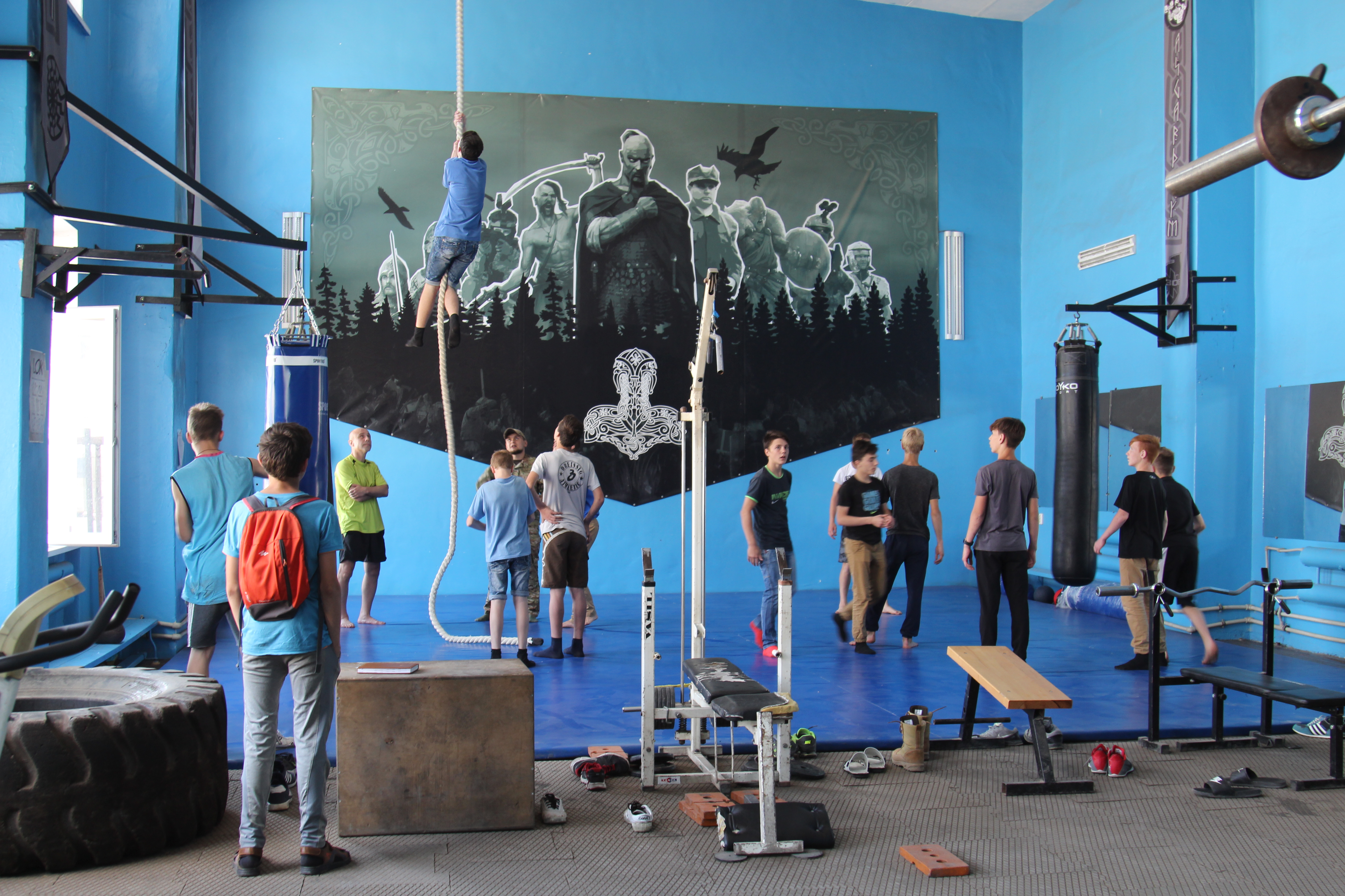 У спортзалі школярі разом з бійцями позмагались у лазінню по канату та навіть запропонували азовцям в майбутньому влаштувати футбольну гру – команда школи проти команди полку АЗОВ.