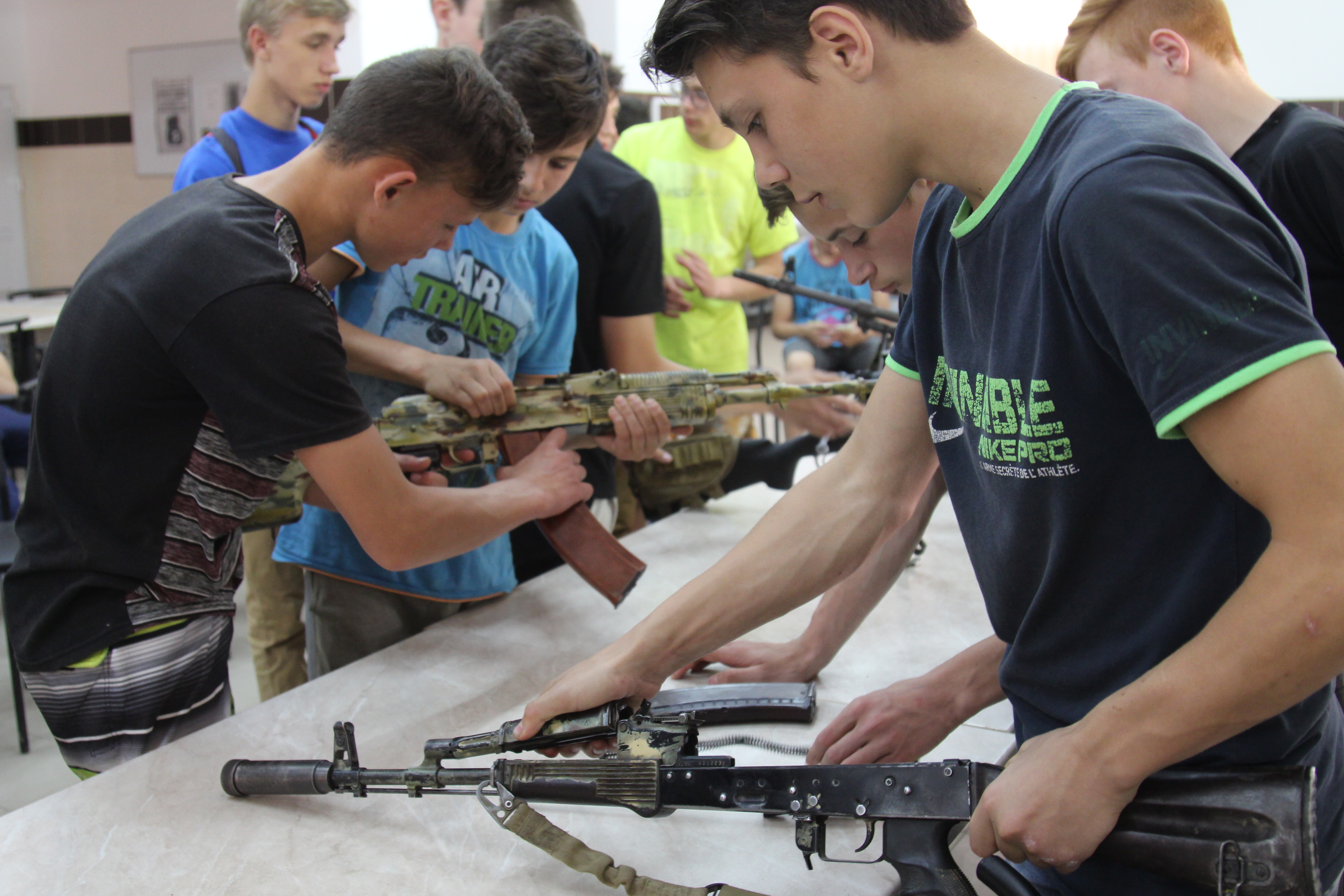 Після спортзалу учням показали техніку полку та покатали на бронеавтомобілі «Спартан» і бронетранспортері. Діти ставили багато питань та роздивлялись сліди від куль, які залишились на техніці після бойових виїздів азовців. Далі для маріупольських школярів була проведена 15-хвилинна лекція з історії їхнього рідного краю – такої, яка вона є насправді, а не яку нав’язує українцям російська пропаганда. Ну а потім для хлопців провели невеличкий майстер-клас зі збирання та розбирання деяких зразків зброї, яка є на озброєнні в полку. Після майстер-класу школярі самі змогли спробувати свої сили у цій справі. Наостанок маленьких гостей гарнізону пригостили солодощами та пообіцяли запросити в гості найближчим часом ще, адже по щасливих очах дітей було видно, що екскурсія на гарнізон полку АЗОВ стала для них цікавою та пізнавальною.