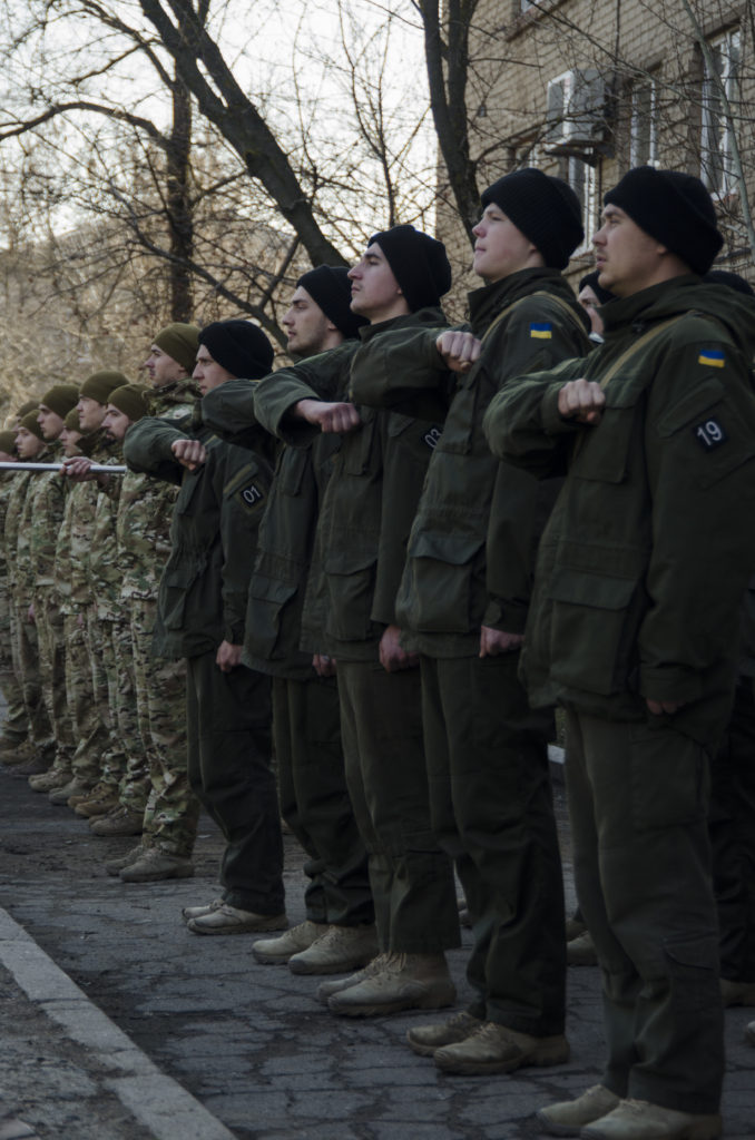Після його промови рекрути склали присягу та отримали шеврони підрозділів, в які були розподілені. Три кращі новобранці були удостоєні честі самі обрати підрозділи, в яких проходитимуть службу. Двоє з бійців висловили бажання залишитись у лавах Військової школи командирів імені полковника Євгена Коновальця, а найкращий випускник БКБП обрав службу в гаубичному артилерійському дивізіоні.
