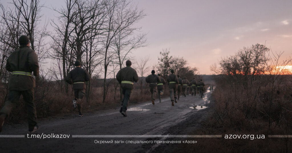 На полігоні полку «Азов» триває 5-тижневий Базовий курс бойової підготовки. Наразі рекрути подолали так званий «екватор» – до кінця БКБП залишилась половина шляху. Тож напередодні майбутні азовці склали діагностичний іспит з фізичної підготовки.