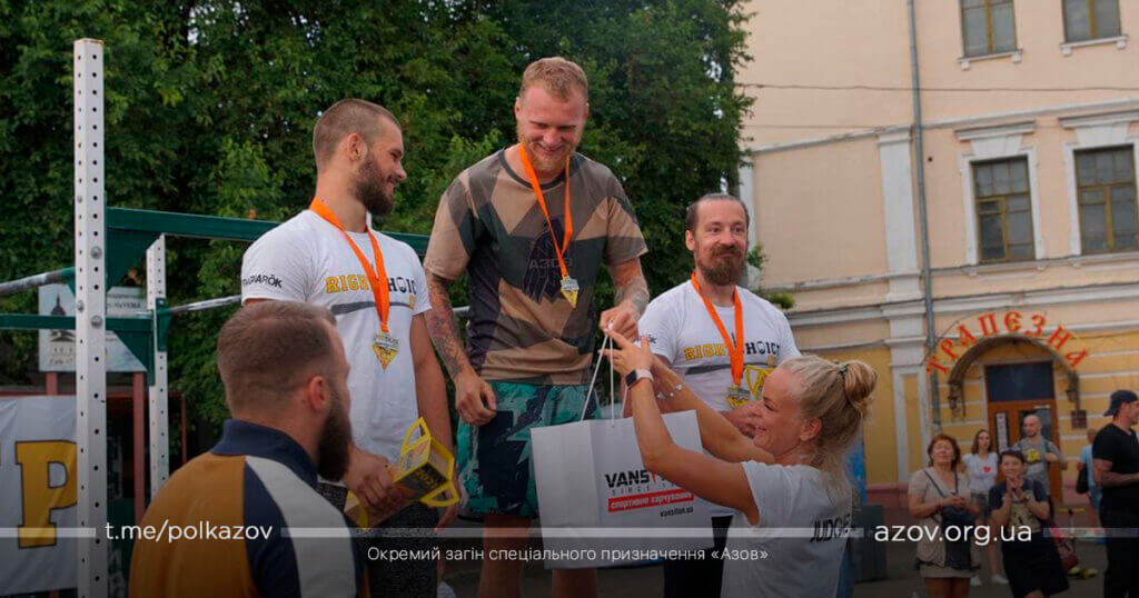 З самого ранку в центрі Києва близько ста спортсменів-аматорів зі всієї України виконували виснажливі кросфіт-вправи. Наш підрозділ на змаганнях був представлений 7 бійцями. Під палючім сонцем та зливовим дощем вирувала справжня буря емоцій, а усі спортсмени показували вражаючі результати.