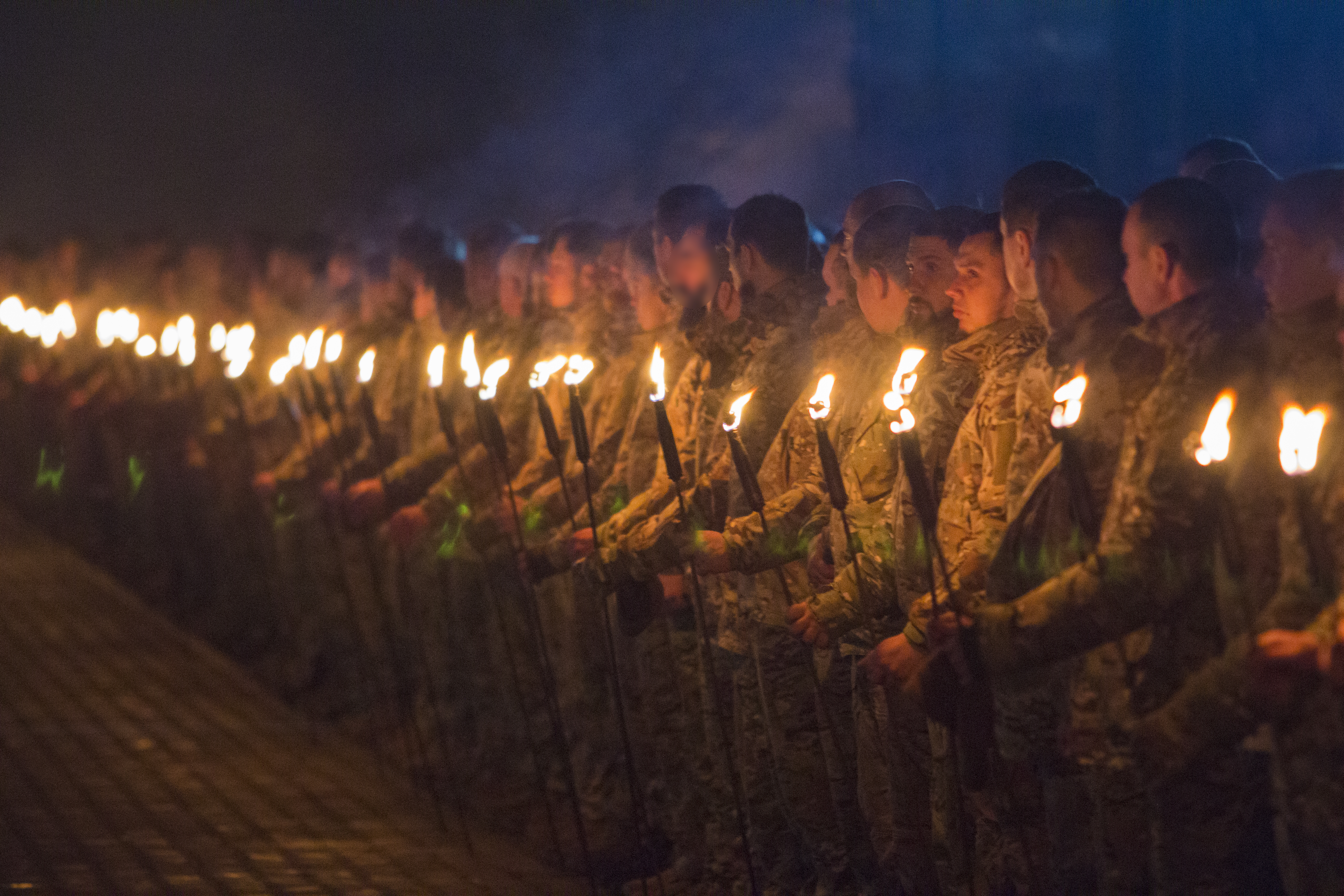 База полку АЗОВ в Урзуфі нині не така, як завжди: тиша, десятки вогнів, командування та особовий склад у скорботі. Це Юру Баррета проводжають до пращурів у вічність. Попрощатися з бійцем приїхали і колишні командири АЗОВу Андрій Білецький та Максим «Мосе» Жорін.