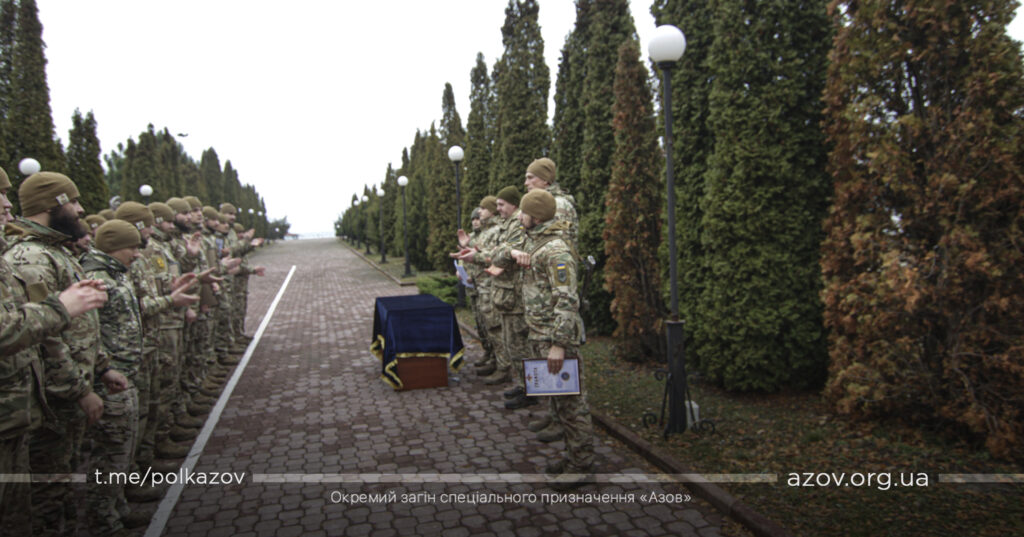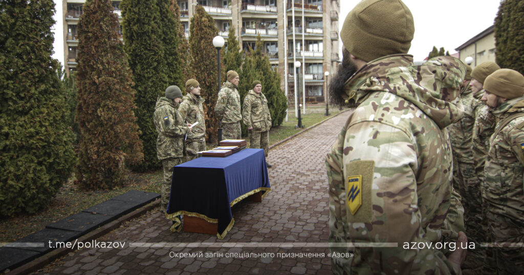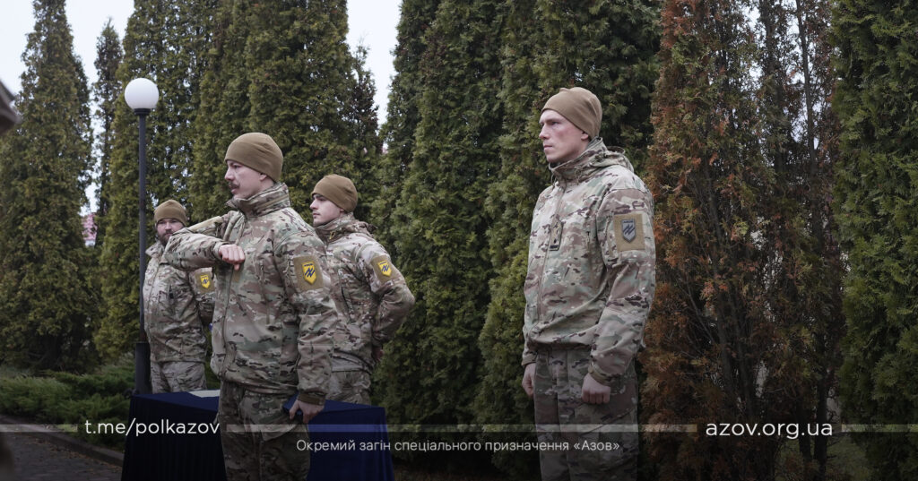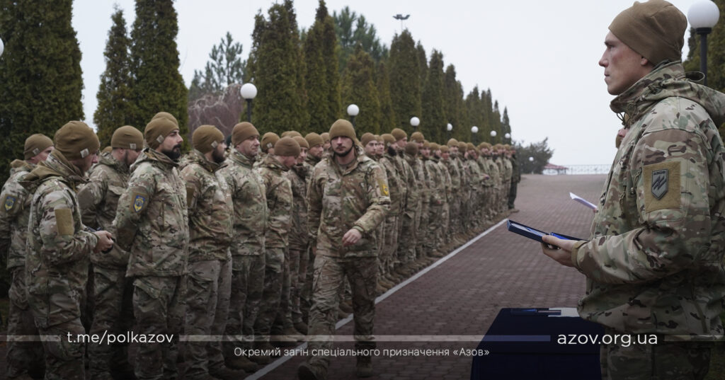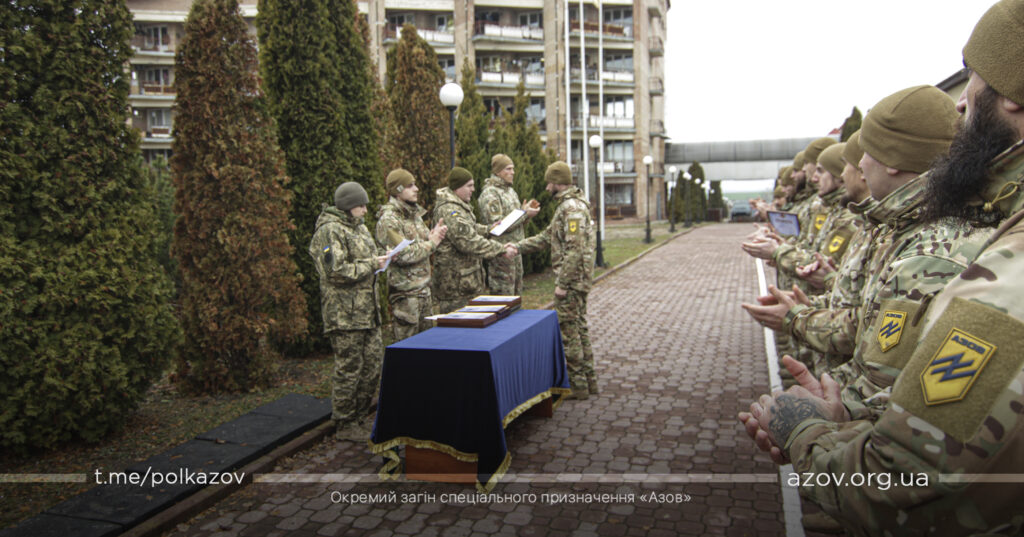 Під час ранкового шикування на одному з гарнізонів полку бійців «Азову» нагородили відомчими відзнаками НГУ та ТГР «Маріуполь».