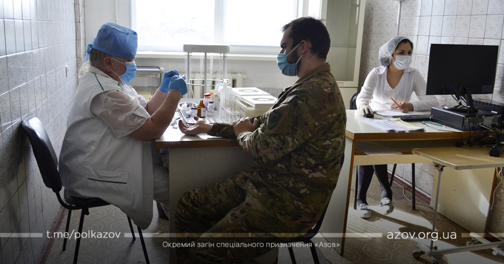 Бійці полку «Азов» вже не вперше беруть участь у благодійних заходах зі здачі крові. 18 лютого у Маріупольській станції переливання всі охочі азовці (а таких виявилося немало) отримали змогу стати донорами та подарувати шанс на порятунок усім, хто цього потребує. Перед донацією бійці пройшли обов’язкові етапи – реєстрацію, медичні обстеження тощо – та отримали допуски.
