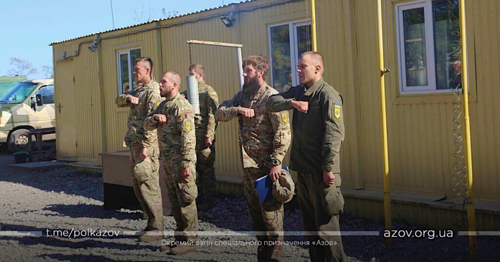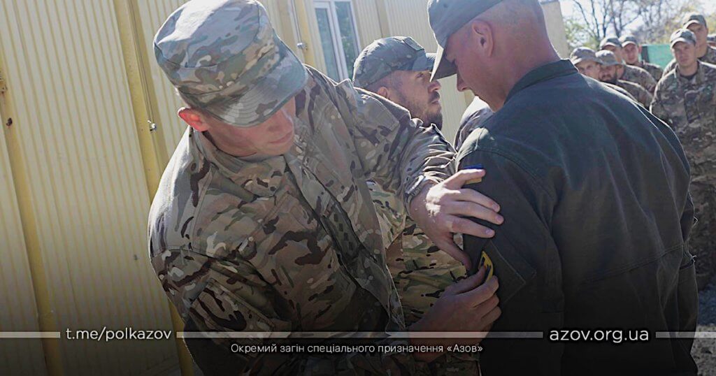 «Сьогодні у вас визначний день – буквально через кілька хвилин ви отримаєте заслужений шеврон нашого полку та станете бійцями елітарного підрозділу. У полку «Азов» є свої правила, традиції та свої принципи. Та найголовніше, що у нього є, – славетний бойовий шлях. Це лише початок вашої кар‘єри в полку «Азов». Сьогодні треба ставати професіоналами. Для цього потрібно побороти всі слабкості та труднощі, і побороти самих себе, побороти себе у своїй голові. Для цього вам необхідно щодня тренуватися та намагатися стати кращими, і крок за кроком іти до ідеалу. Ви маєте щодня примножувати славу нашого підрозділу, щодня працювати над собою».