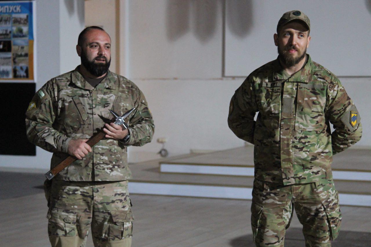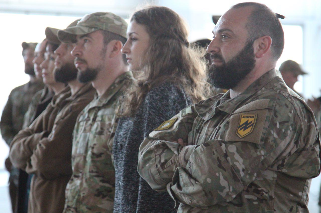 Після виступу першого командира полку АЗОВ друг Кірт викликав для вручення подарунку першого командира Військової школи імені Євгена Коновальця, людину, яка заснувала ВШК, – полковника грузинської армії Георгія Купарашвілі. Георгій привітав всіх присутніх зі святом та побажав українцям перемоги у війні з російським загарбником.