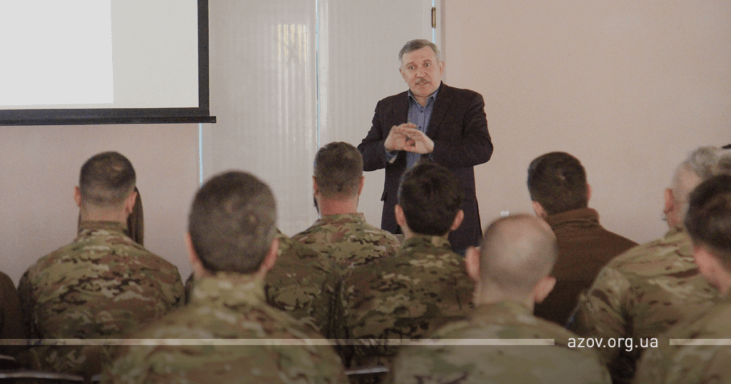 24 січня на одному з гарнізонів полку «Азов» відбулась пізнавальна лекція на тему «Світ в трансформації: військово-енергетичний вимір», яку для офіцерів підрозділу прочитав президент Центру глобалістики «Стратегія ХХІ» Михайло Гончар.