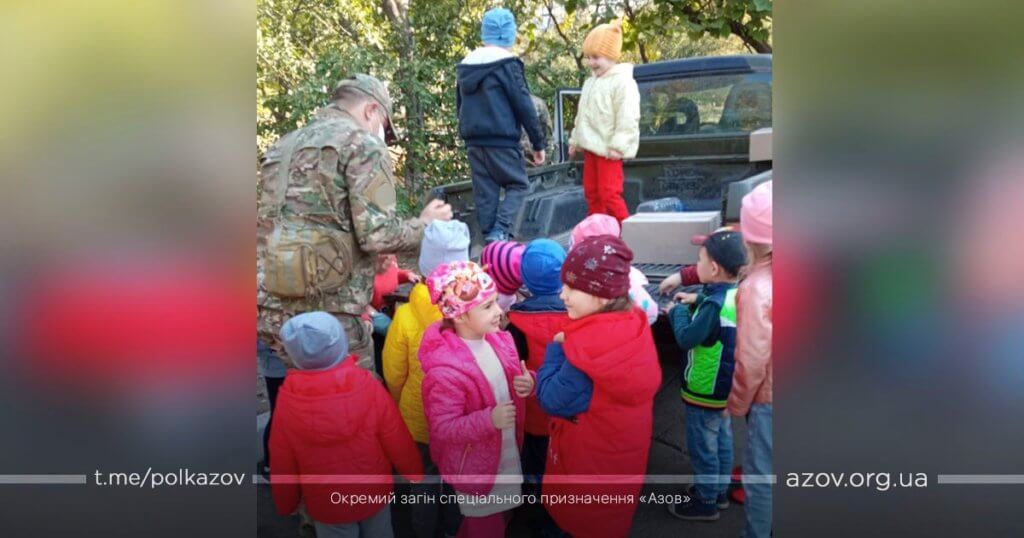 На честь Дня захисника України адміністрація та вихованці дитячого садка №47 Маріуполя запросили в гості бійців полку «Азов», аби особисто привітати їх зі святом. В гостях у дітлахів на азовців з 1-го батальйону чекали десятки усних привітань, віршів та малюнків, які дошкільнята підготували саме для героїв-захисників. Візит не обійшовся без цікавості малих до солдатської буденності бійців, і азовці з радістю відповіли на всі їхні запитання.