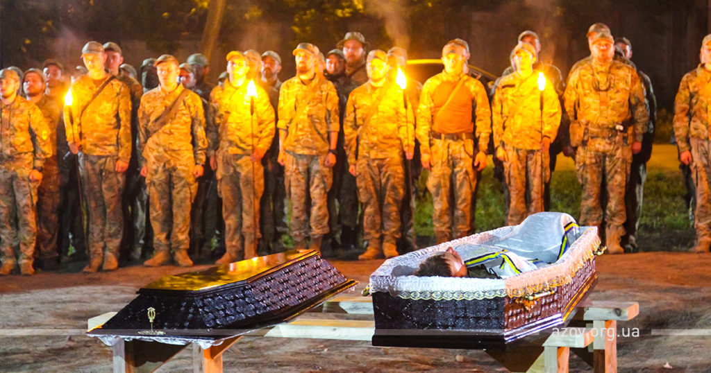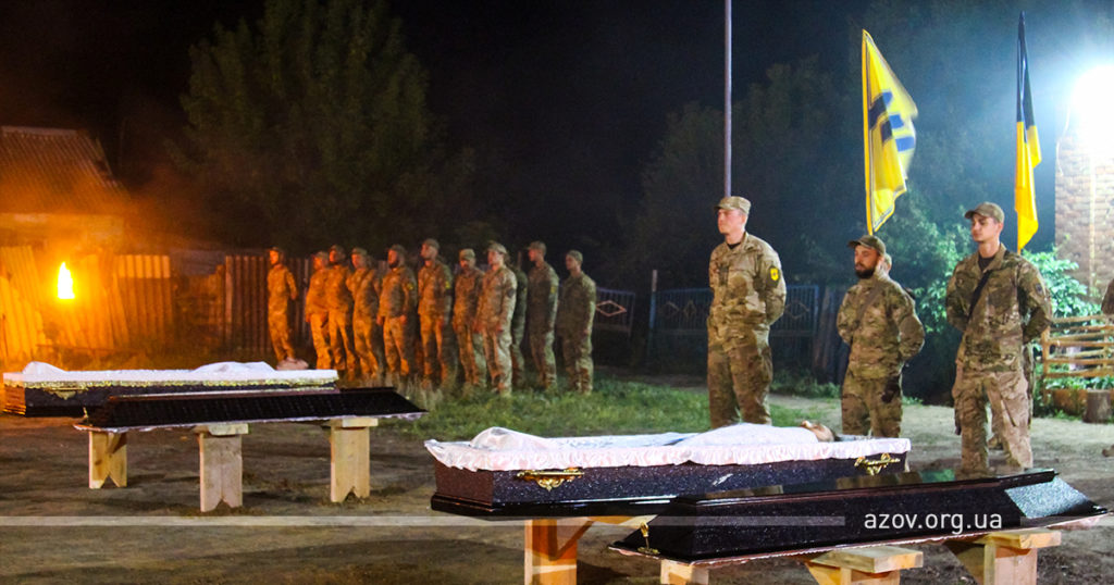 Ввечері 7 червня особовий склад БТГр «Азов», який несе службу на Світлодарській дузі, попрощався із загиблими напередодні вночі бійцями Дмитром «Круглим» Пруглом та Максимом «Максоном» Олексюком. 28-річний азовець Круглий та 23-річний азовець Максон полягли у запеклому бою із окупантом, який тривав майже чотири години, в ніч з шостого на сьоме червня. Їхні життя забрав прицільний ворожий обстріл 122-мм ствольної артилерії та 120-мм мінометів, заборонених Мінськими угодами. Обидва воїни були бійцями 3-ї роти «Азову». Окрім того, що друг Круглий був надзвичайно сміливим та професійним воїном, у своїй роті він був заступником командира з роботи із особовим складом та вірно служив на благо підрозділу з 2014 року. Друг Максон запам’ятається побратимам як вірний та мужній товариш, який ніколи не відмовляв у допомозі та понад усе в житті любив Україну.