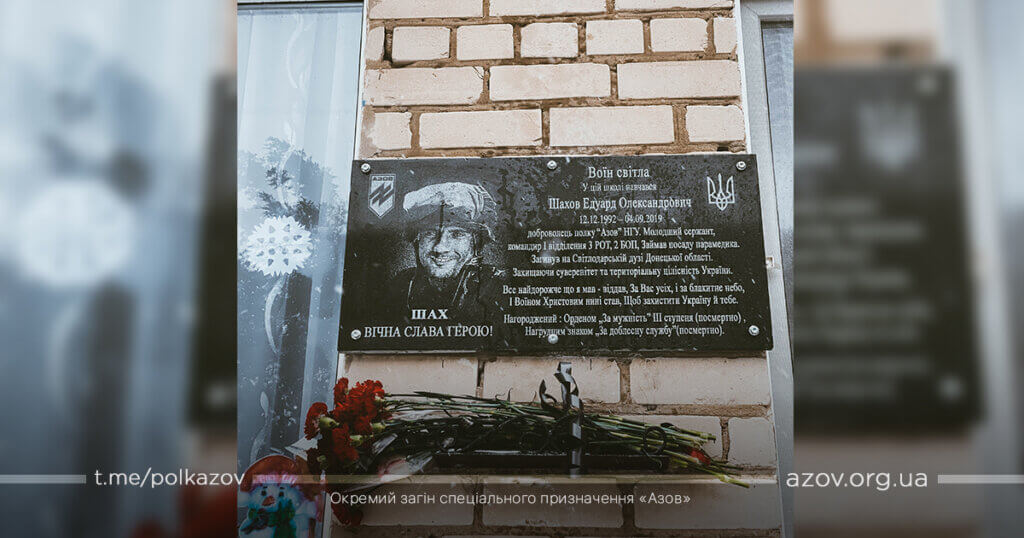 28 Грудня, 2021 Воїн світла. На Херсонщині відкрили меморіальну дошку загиблому герою полку «Азов» Едуарду Шахову