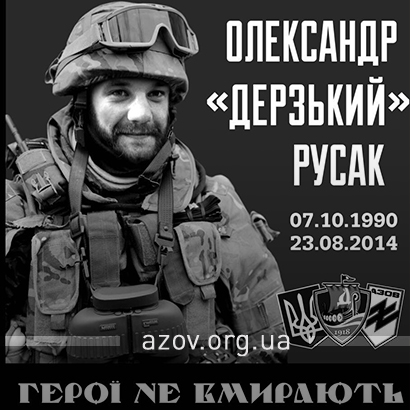 23 серпня 2014 року в бою з російським окупантом загинув Олександр Русак на псевдо “Дєрзкій”. Всього півтора місяця азовець не дожив до свого 24-річчя.