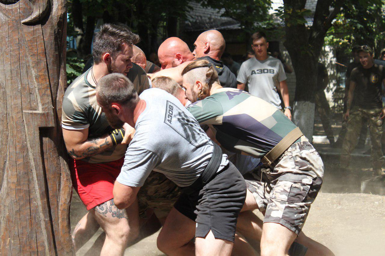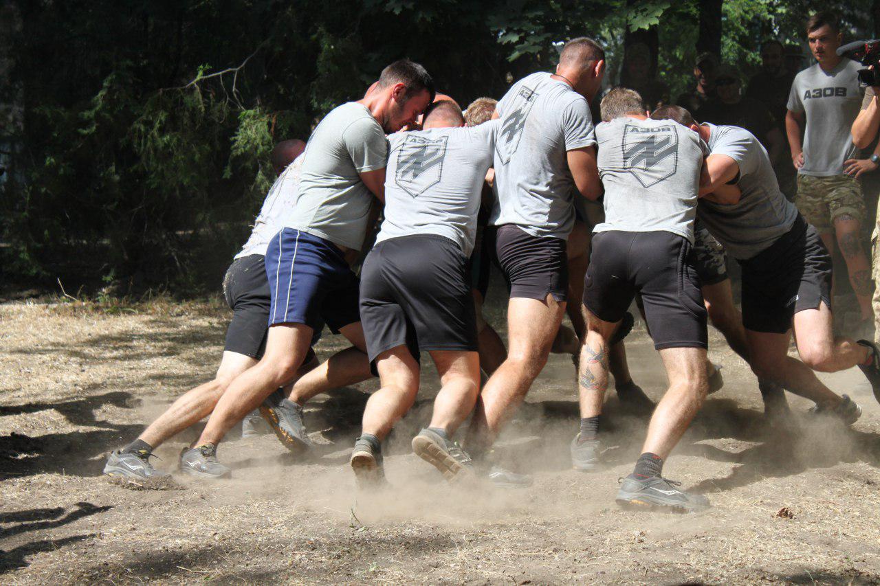 Одразу після обряду розпочались спортивні змагання, де кожен азовець за бажанням міг продемонструвати свої силу та витривалість. Турнір проходив у кілька етапів і поділявся на дві номінації – індивідуальну та командну. Відповідно, в командних змаганнях бійці не тільки мали змогу продемонструвати свою силу, але й показали, наскільки дружні та згуртовані підрозділи в полку АЗОВ. Усього участь у цих випробуваннях взяло 5 команд. За результатами змагань місця розподілились так: перемогу отримала команда 1-ї роти, друге місце посіла 3-тя рота, третє місце – за командою 2-ї роти.