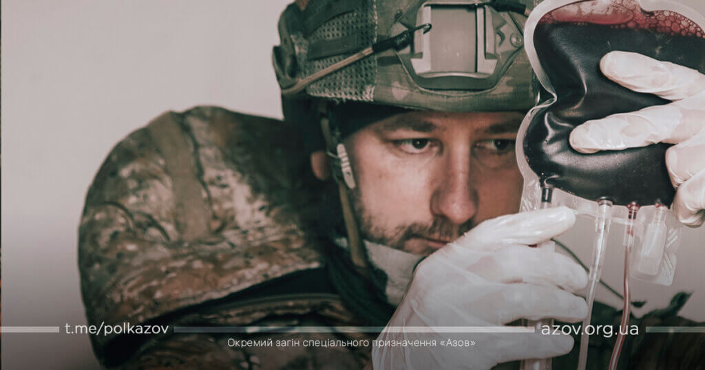 «Згідно з протоколом використовується заморожена кров нульової групи та негативного резус-фактору, але для цього потрібно підбирати людей і проводити аналізи. Тож сьогодні ми проводимо аутогемотрансфузію, коли у бійця зливають кров і йому ж його кров заливають. Я вважаю, що необхідно аби медики могли це вміти. І хоча це більше стосується екіпажів медичної евакуації, звичайні бійці теж повинні мати такі навички».