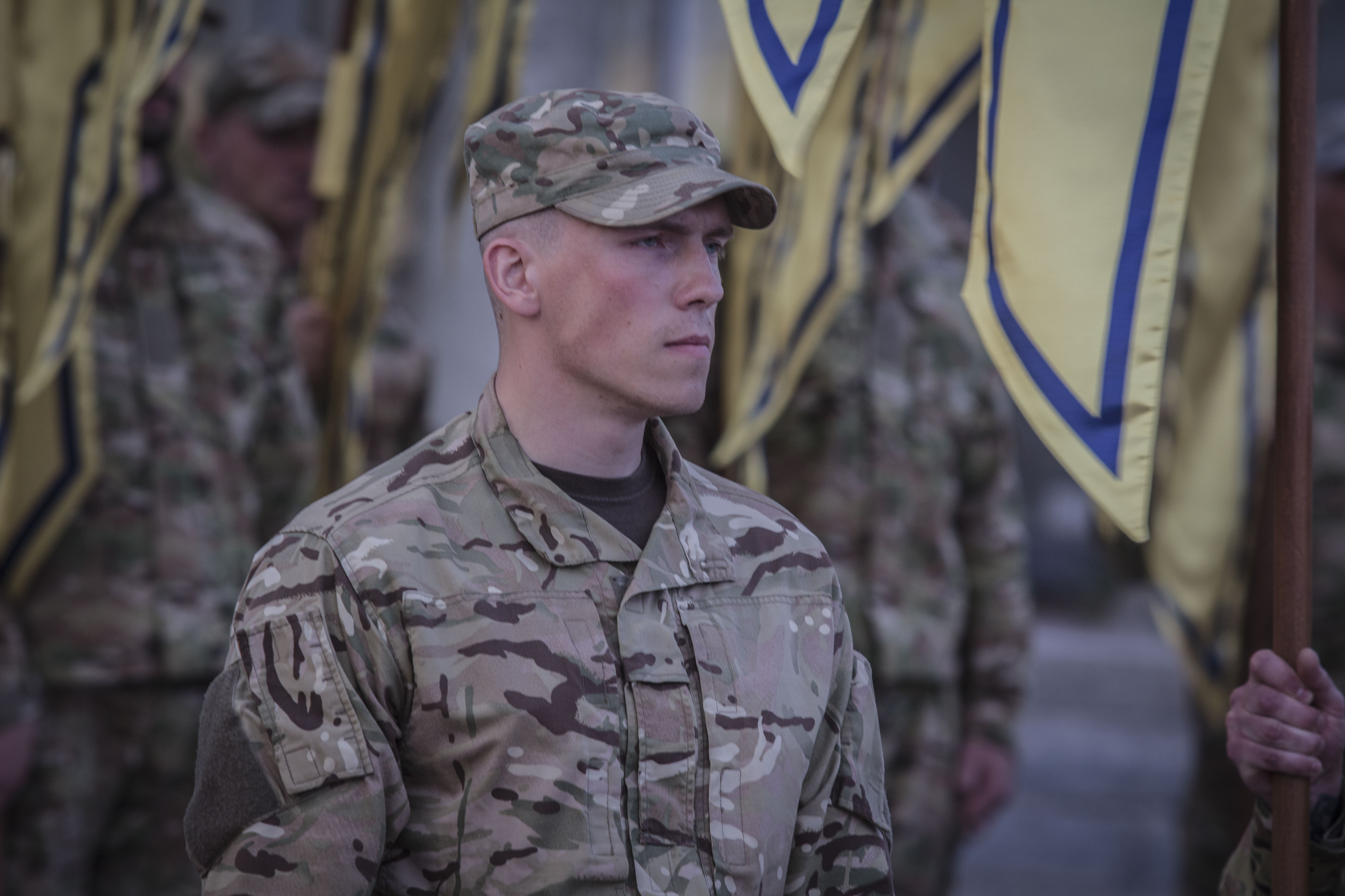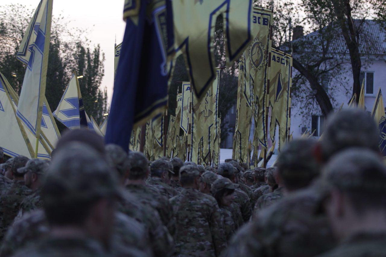 Першим слово мав командир полку АЗОВ Редіс: «Сьогодні ми відзначаємо четверту річницю від дня створення АЗОВу. Тоді 56 добровольців взяли до рук зброю та почали свою боротьбу проти російського окупанта. Через декілька місяців ми зросли до батальйону, згодом переформатувалися у полк. Сьогодні переді мною стоїть професійний підрозділ, до складу якого входить більше тисячі бійців. За чотири роки боротьби АЗОВ втратив 36 бійців. Вони полягли за ідею, за незалежність своєї країни».
