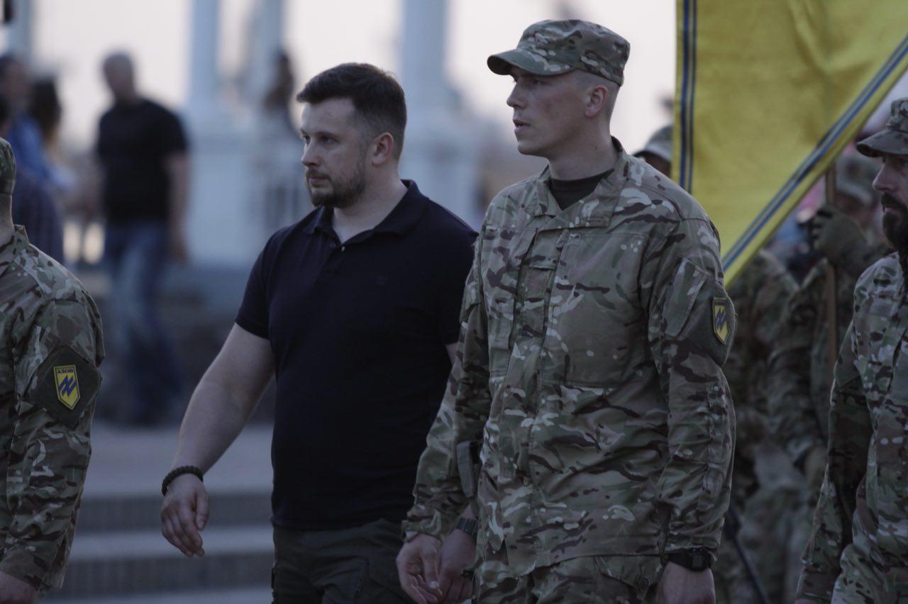 Хода, яка розпочалася одразу після урочистого вручення штандартів 29 підрозділам полку, прокрокувала від місцевого Будинку культури та завершилася яскравим фаєр-шоу на Приморській площі.