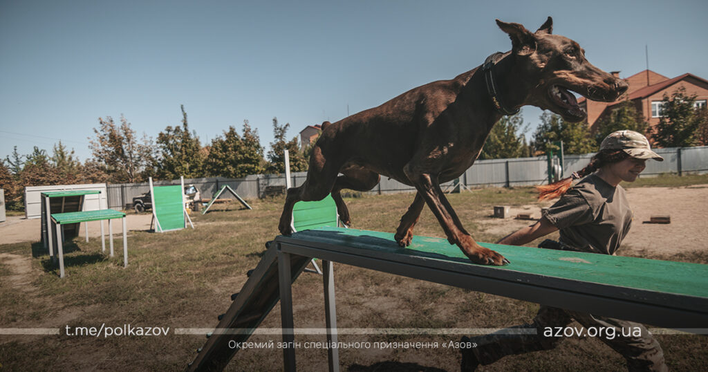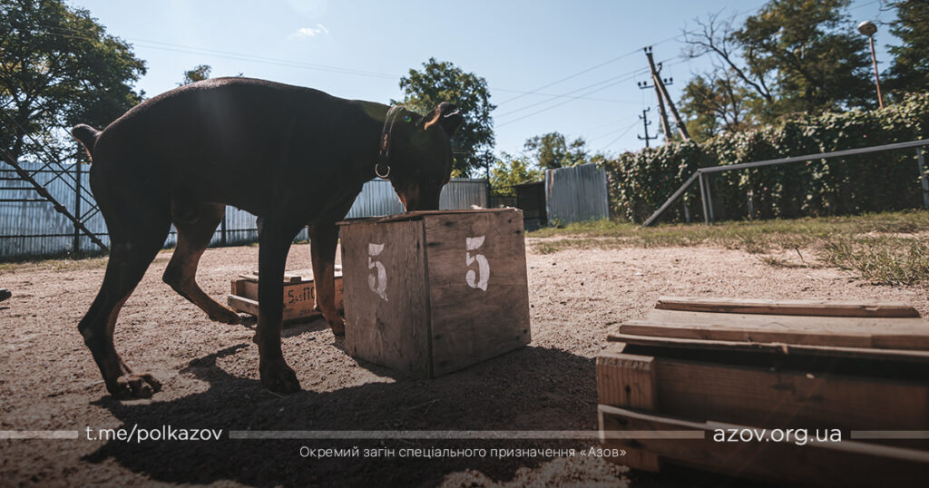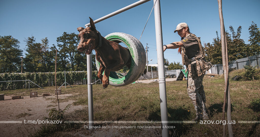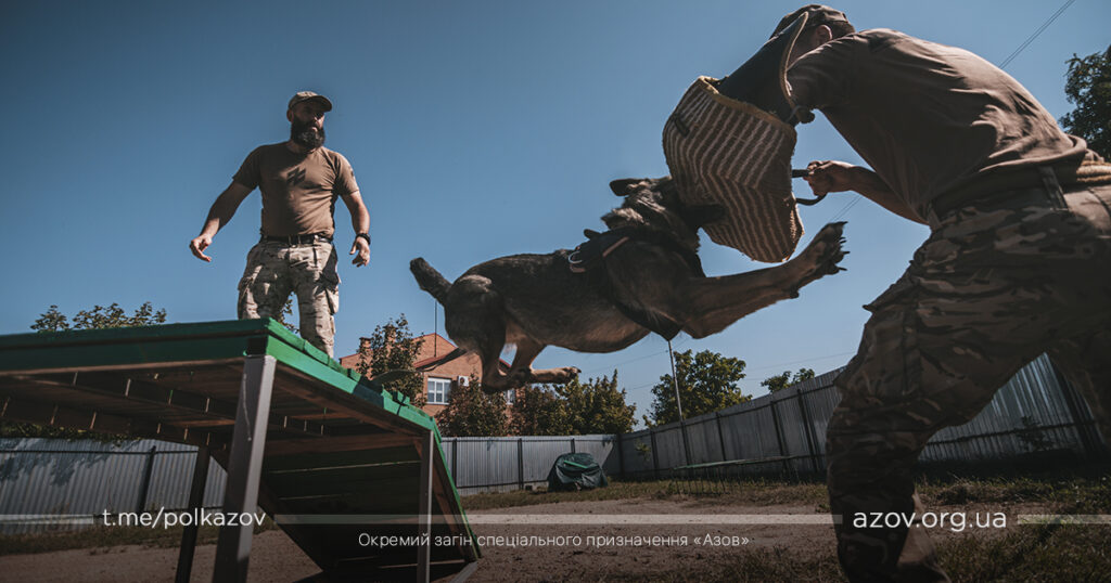 Кінологи полку «Азов» додають: будь-яка команда дисциплінує собаку та налаштовує до вивчення наступної. Тож дресирують чотирилапих в різних стресових умовах та ситуаціях. Військові пояснюють, що навчити собаку стрибати за м’ячиком або через бордюри – не дуже важко, а от щоб вона виконувала команди та діяла правильно при різноманітних подразниках – складніше завдання. Але це дуже потрібні навички, особливо з огляду на те, що це службові пси бойового підрозділу.