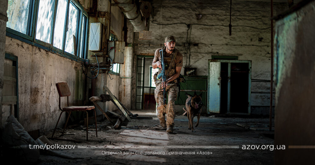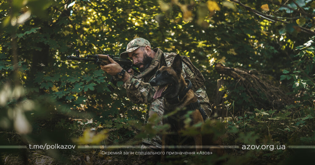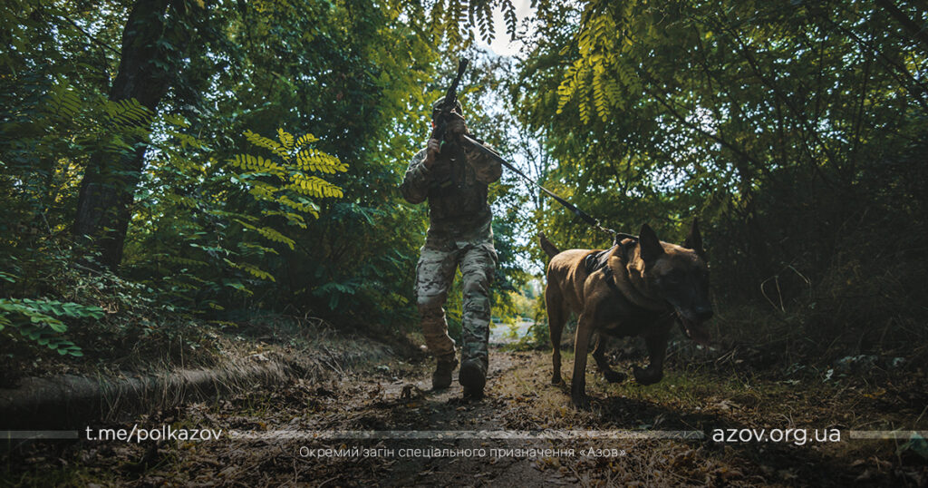 Кінологи нашого підрозділу мають на службі 11 сторожових собак різних порід (бельгійські вівчарки (малінуа), добермани, ротвейлер та німецькі вівчарки). Кожній породі притаманні свої особливості та характеристики, необхідні для певної роботи. До прикладу, малінуа – це універсальна порода, тому їх і використовує більшість країн НАТО. Вони підходять як для пошуку по сліду, так і для затримання та конвоювання, розповідає кінолог полку «Азов» з позивним «Вівтар»: