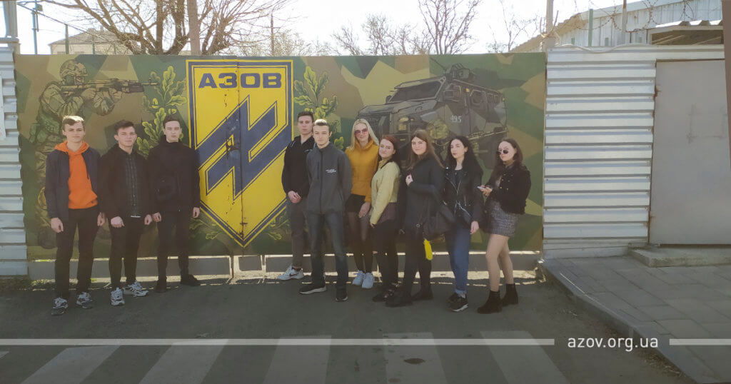 Екскурсію для гостей підрозділу провів командир першого батальйону «Азову» друг Сухарь. Комбат розповів молоді про щоденні обов’язки бійців, описав їхній звичайний тренувальний та навчальний процес, познайомив із побутом та показав важку техніку, яка стоїть на озброєнні полку. В подальшому студенти виявили бажання стати учасниками вишколів полку «Азов» для цивільного населення.