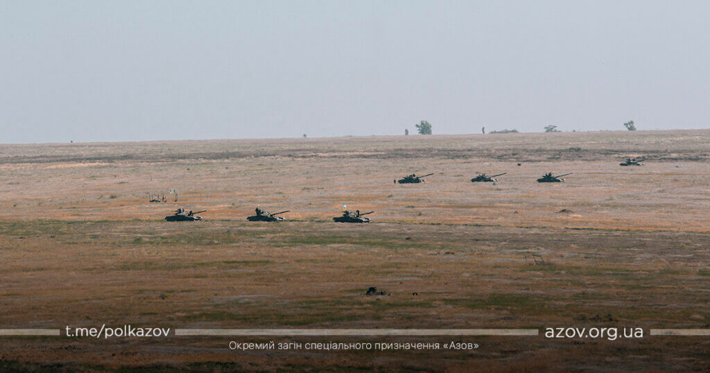 9 вересня на військовому полігоні поблизу Бердянська відбулися масштабні загальновійськові навчання з обміну досвідом застосування танкових підрозділів. Під час маневру танковий взвод полку «Азов» відпрацював протидесантну оборону морського узбережжя.