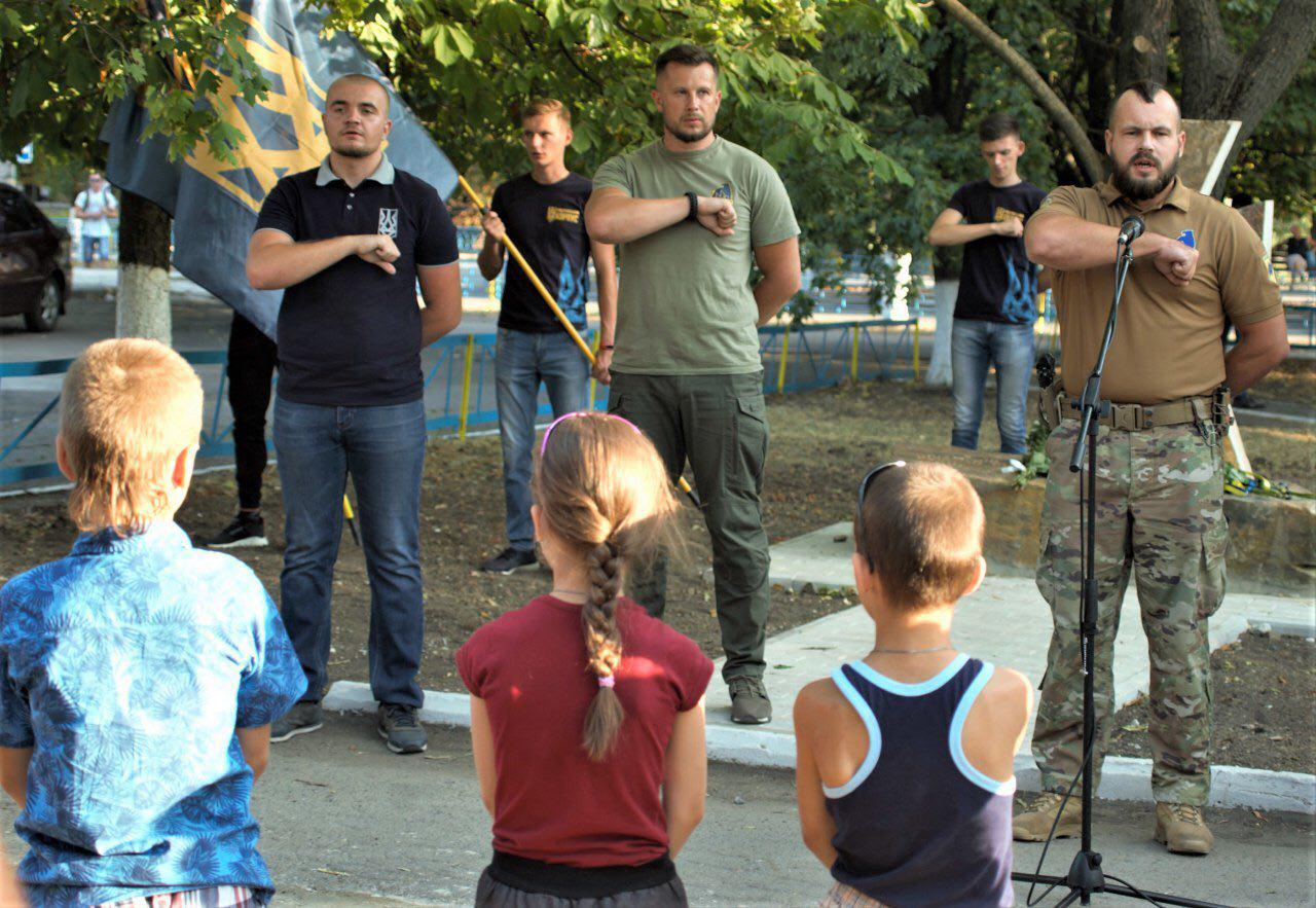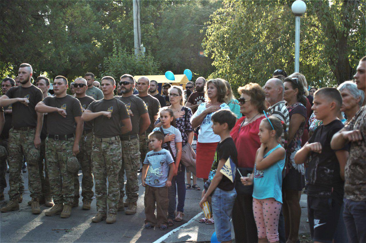 24 серпня в рамках заходів, приурочених до Дня Незалежності України, в смт Мангуш Донецької області відбулося урочисте відкриття пам’ятного знака воїнам, які віддали життя за Україну. Цього дня в центрі міста зібралися жителі, гості, бійці полку АЗОВ та діти-учасники військово-патріотичного табору «Азовський патріот».