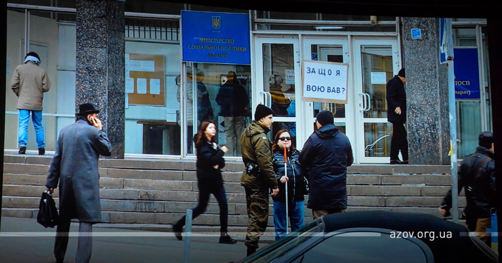 У Маріуполі відбувся допрем’єрний показ повнометражного документально фільму режисера Сергія Волкова «Вдивляючись у темряву». На перегляд кінострічки запросили бійців полку «Азов» та інших підрозділів. Також були присутні люди із вадами зору, про проблеми яких, власне, у цьому фільмі й розповідається.