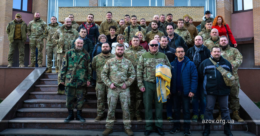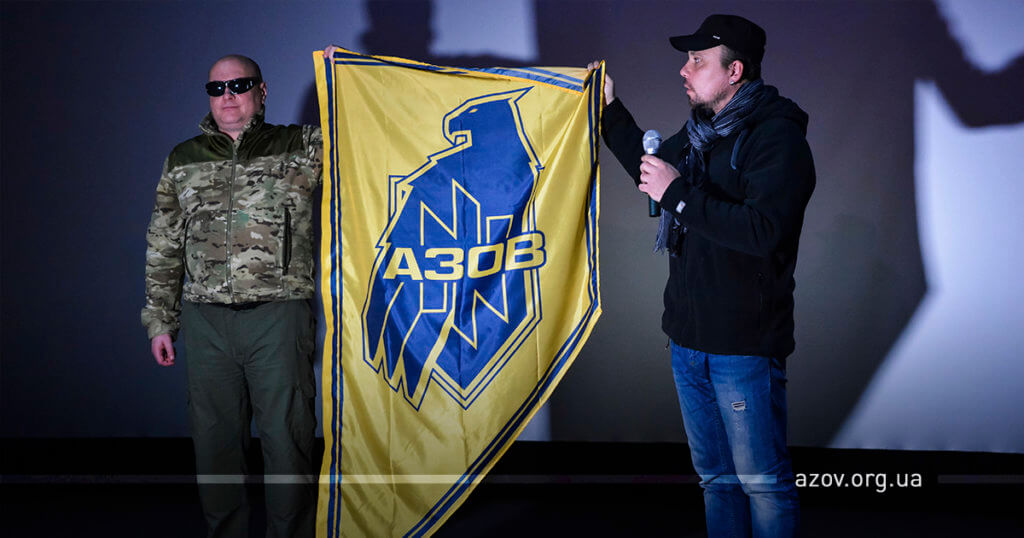 Наприкінці зустрічі бійці полку «Азов» подарували Віталію свій бойовий прапор.