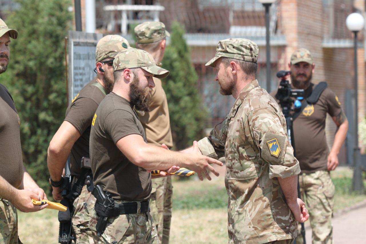 Під кінець своєї промови командир полку висловив сподівання, що кожен із присутніх цього дня на плацу, незважаючи на те, піде він воювати в інший військовий підрозділ чи повернеться до цивільного життя, залишиться вірним Ідеї Нації та буде спиратись на той азовський дух, який виховали в ньому за часи служби у підрозділі. Після закінчення промови командир полку передав усім присутнім бійцям прапори із азовською символікою, аби вони ніколи не забували підрозділ, який став для багатьох із них рідним. Підрозділ, у лавах якого вони боронили свою Батьківщину від російського агресора та з яким були пов’язані останні роки їхнього життя.