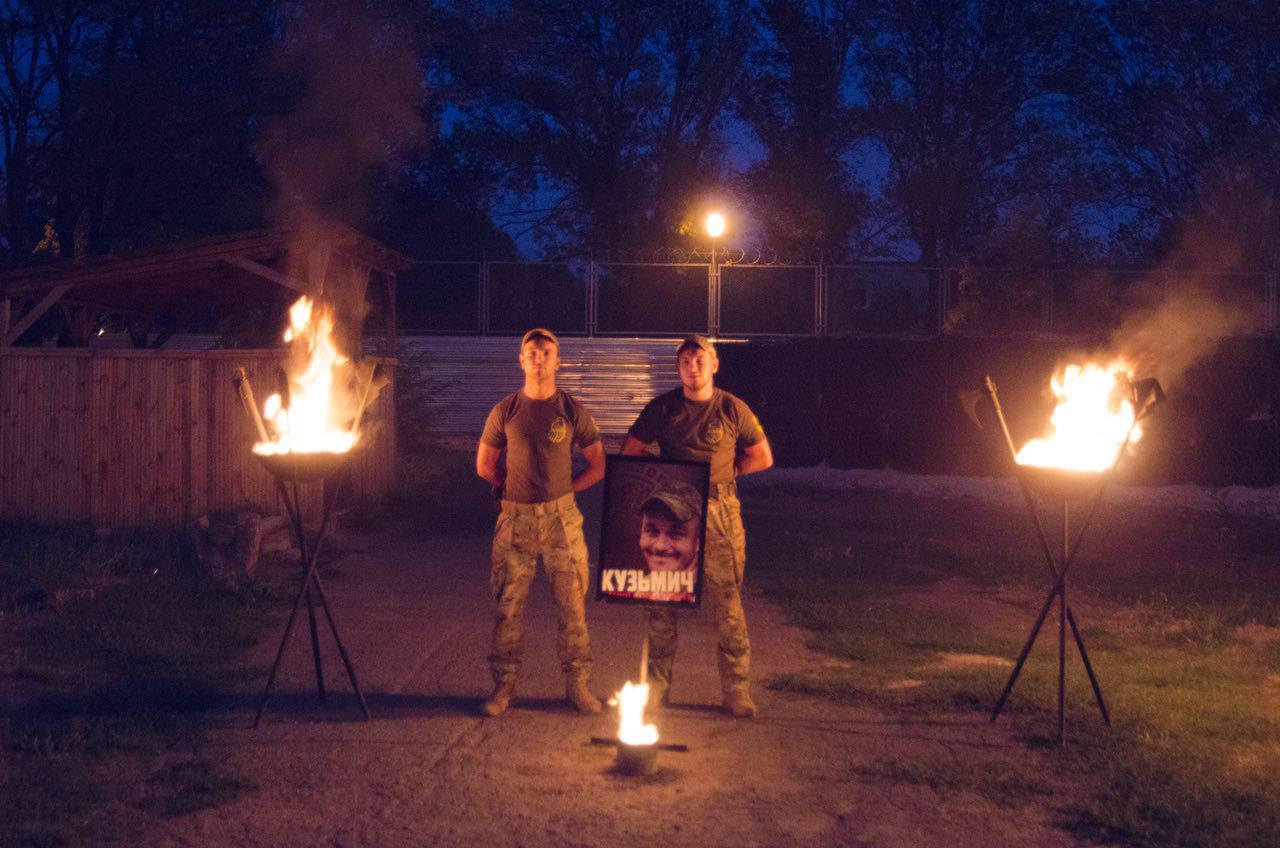 У день загибелі В’ячеслава Галви з позивним Кузьмич бійці полку АЗОВ вшанували його пам’ять на шикуванні.