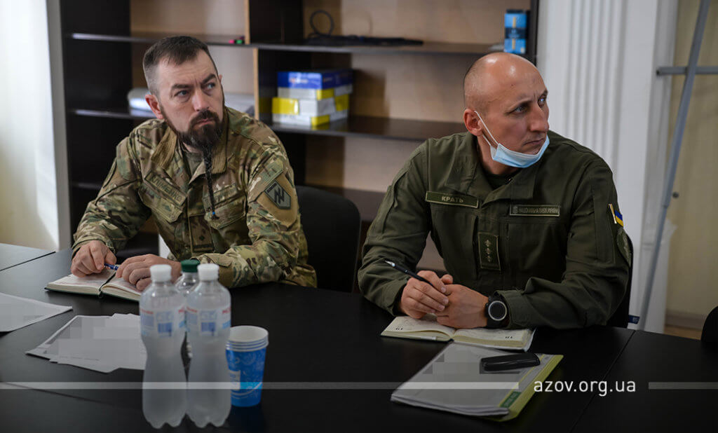У рамках візиту до маріупольської військової частини 3057 НГУ ознайомитися з життєдіяльністю полку спецпризначення та заслухати звіт про виконання завдань, які покладені на полк на теперішній час, приїхав начальник Східного територіального управління Національної гвардії України генерал-майор Олег Сахон. Командир полку «Азов» Денис Прокопенко (друг Редіс) під час наради з генерал-майором у форматі доповіді назвав напрямки, куди «Азов» сьогодні скеровує свої основні зусилля, розповів про зміни, внесені до орг-штатної структури полку, та порушив інші вагомі питання. Начальник штабу та заступники зачитали доповіді щодо результатів діяльності по своїх напрямках.