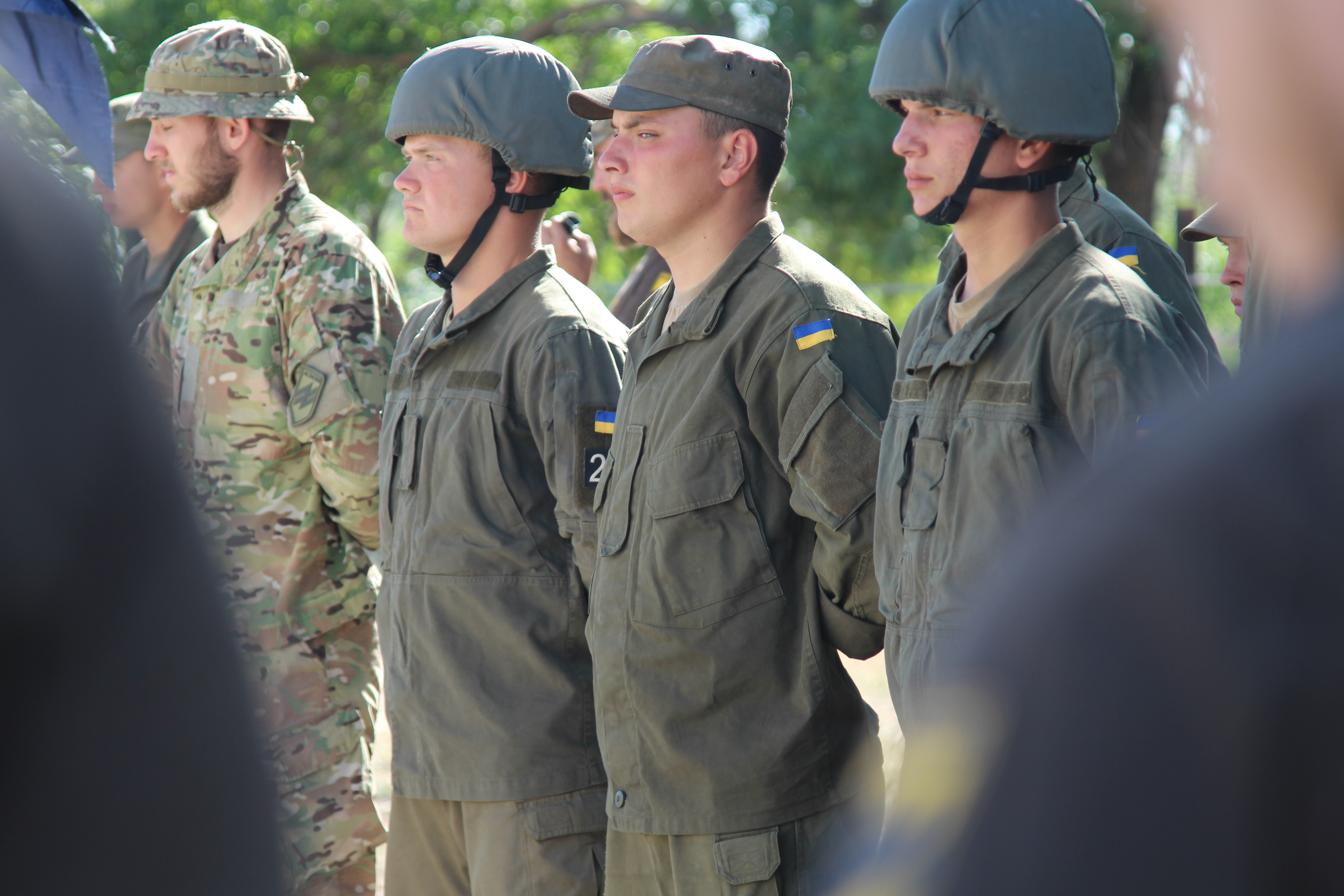 На полігоні урочистим врученням шевронів полку АЗОВ завкінчився базовий курс бойової підготовки, випускниками якого стали 27 найкращих, найсильніших та найвитриваліших рекрутів. Протягом дев’яти тижнів майбутні азовці під керівництвом вимогливих сержантів ВШК імені полковника Євгена Коновальця навчались військовій справі. Ті, хто впорався із курсом, не здалися на половині шляху та склали усі випускні іспити – отримали шеврони полку АЗОВ та поповнили ряди обраних ними підрозділів. Розпочав церемонію вручення шевронів начальник ВШК друг Кірт, який наголосив на тому, що всі рекрути, які пройшли курс молодого бійця, – справжні чоловіки, що змогли переступити через себе та виграти свій перший бій – бій із самим собою.