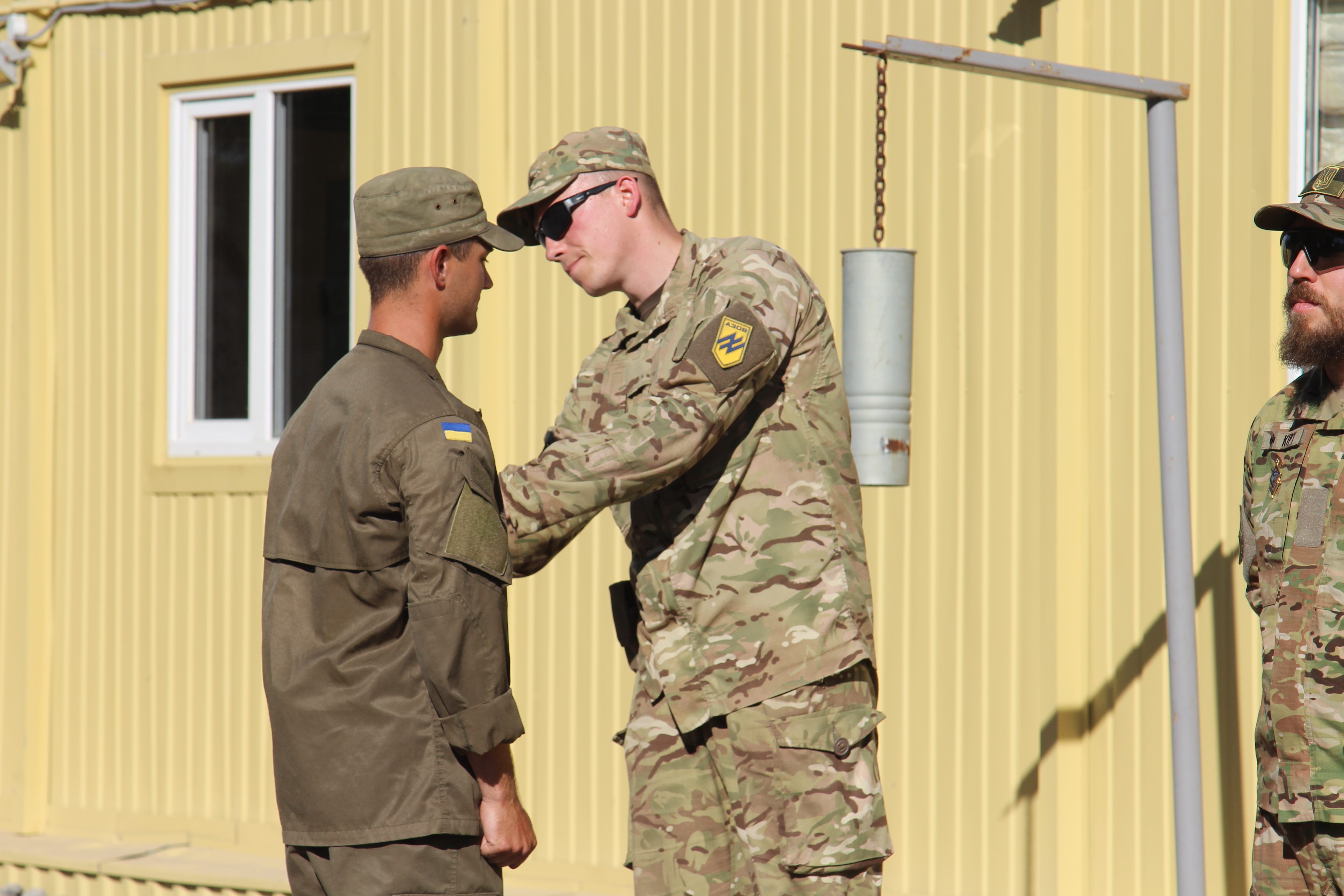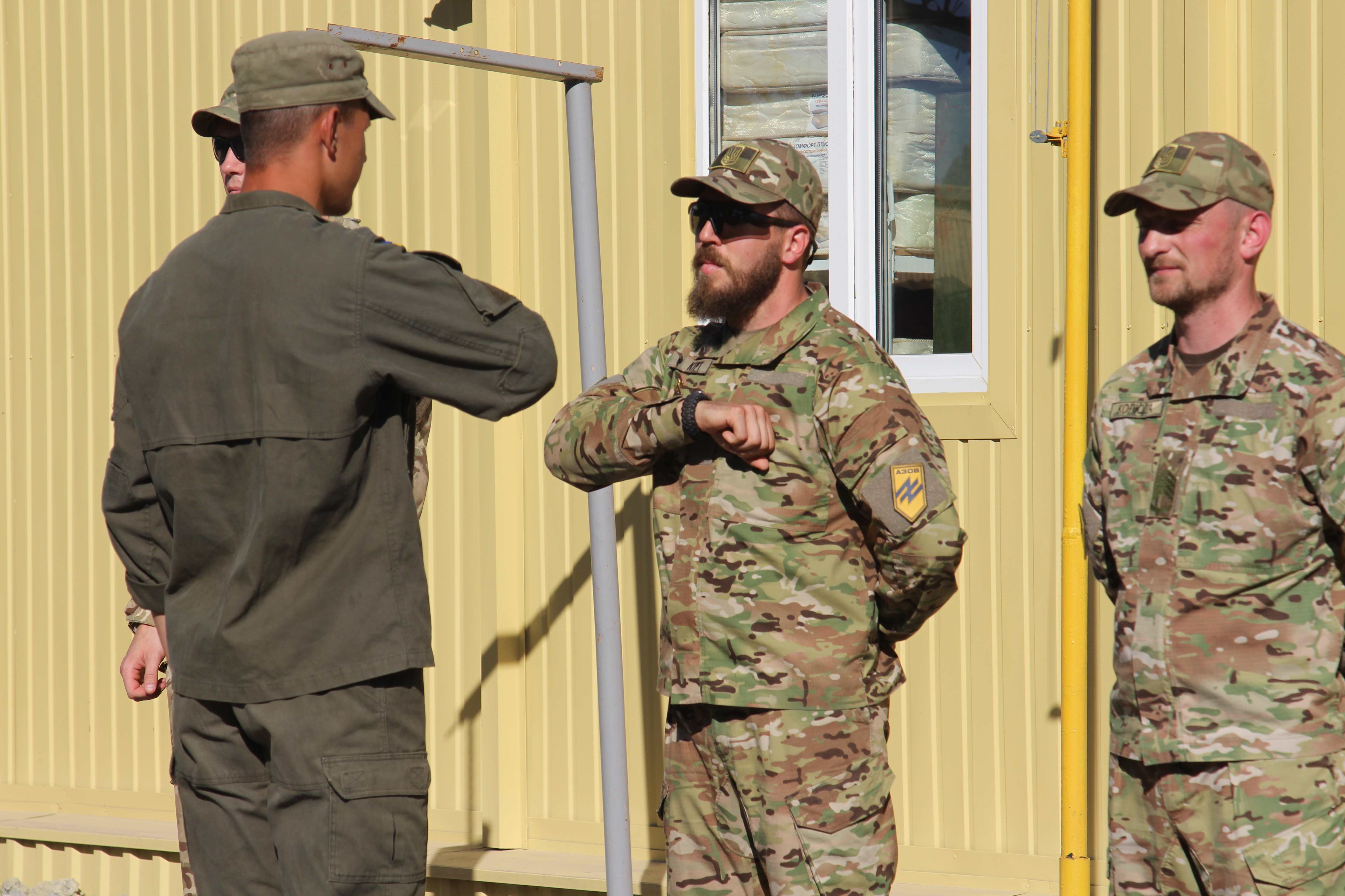 Після своєї промови друг Кірт представив рекрутам командира полку АЗОВ друга Редіса, який також виголосив своє напутнє слово та вже за традицією, що склалась в підрозділі, вручив шеврон полку. Першими шеврони отримали три найкращі рекрути випуску.